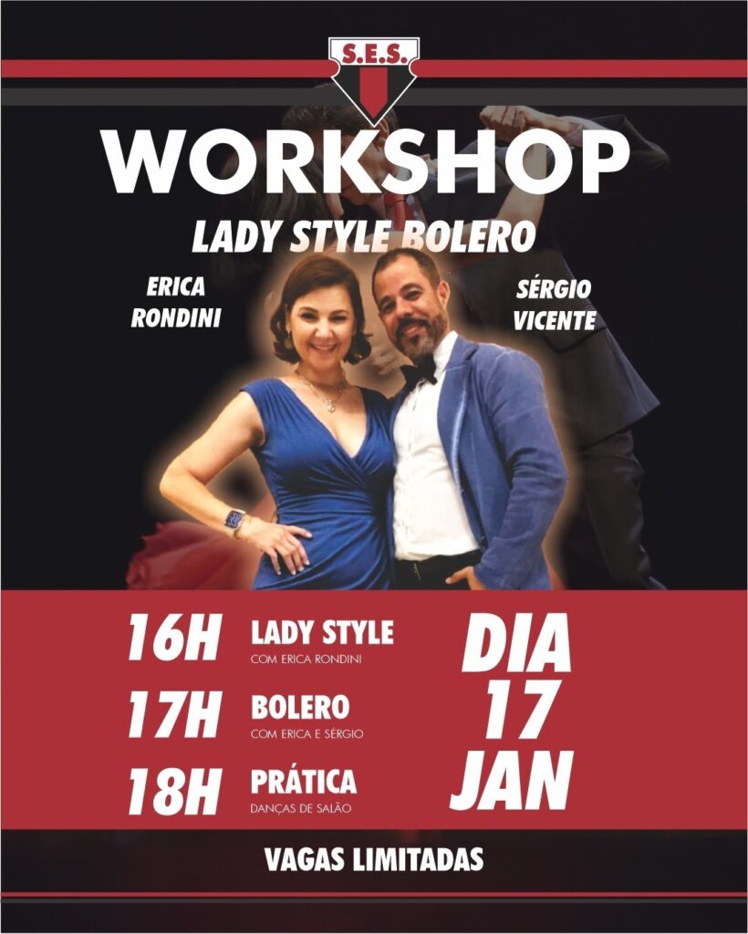 No dia 17 de janeiro, a Esportiva recebe um Workshop Lady Style e Bolero com Erica Rondino e Sérgio Vicente, trazendo técnica, expressão e prática
